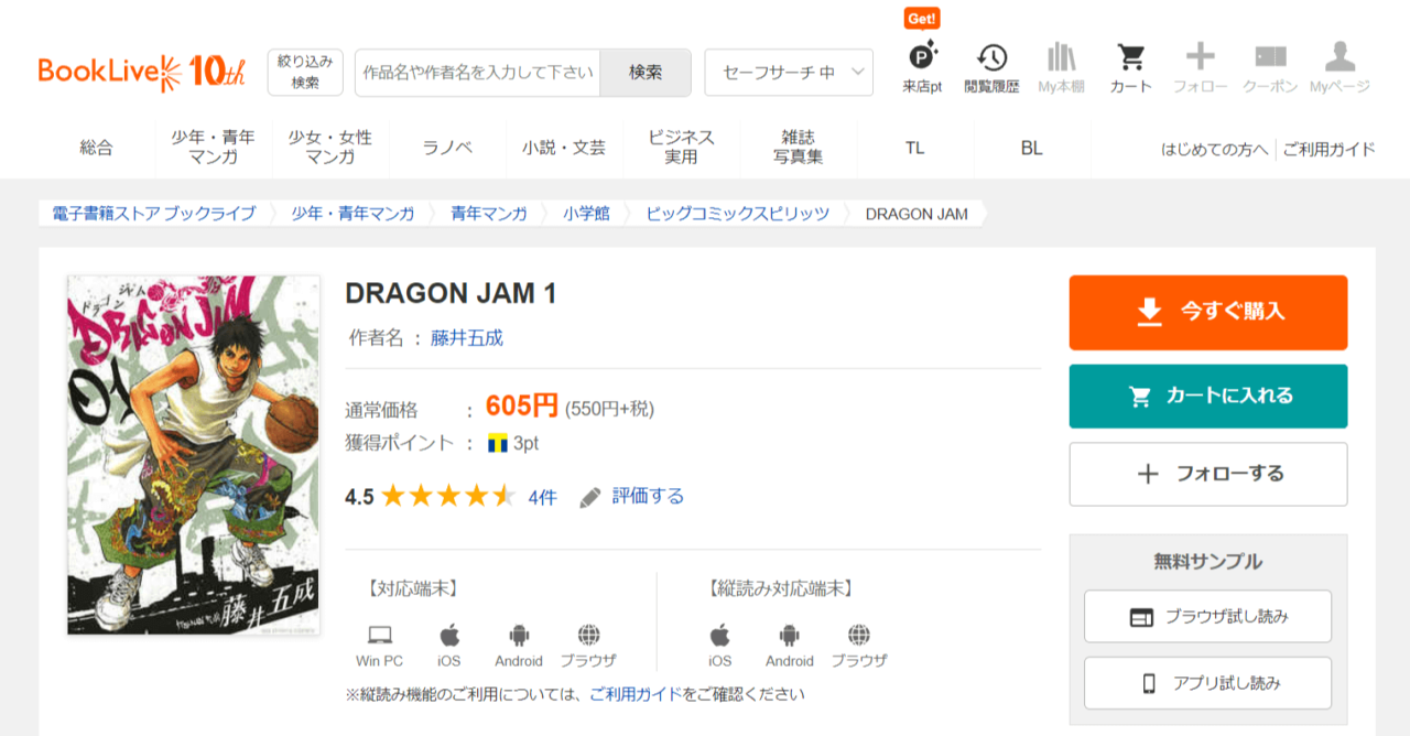 DRAGON JAMは、ストリートバスケの醍醐味を余すことなく描かれたおすすめのバスケ漫画です。ストリートバスケの世界にのめりこんでいくという人間ドラマが見どころですよ。