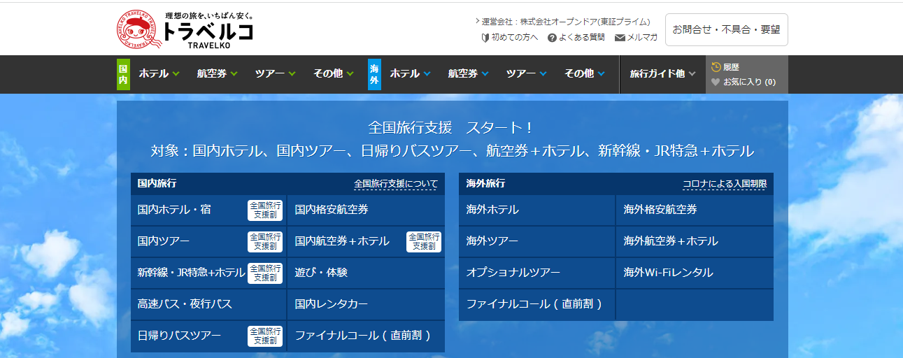 国内・海外の航空券が検索できる「トラベルコ」。航空券だけでなく、宿・ツアー・レンタカー・アクティビティなど、旅行に関連するサービスがまとめて検索できます。