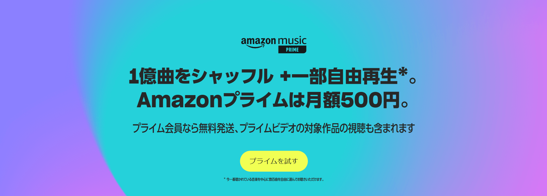 - Amazon Music Prime:プライム会員特典で、1億曲がシャッフル再生できる