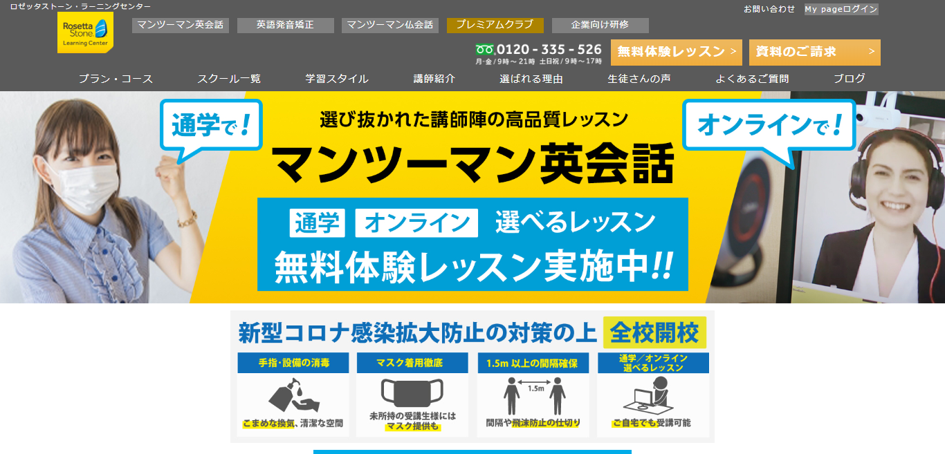 ロゼッタストーン・ラーニングセンターは、eラーニング教材と英会話教室の教材のいい所取りをしたスクールです。