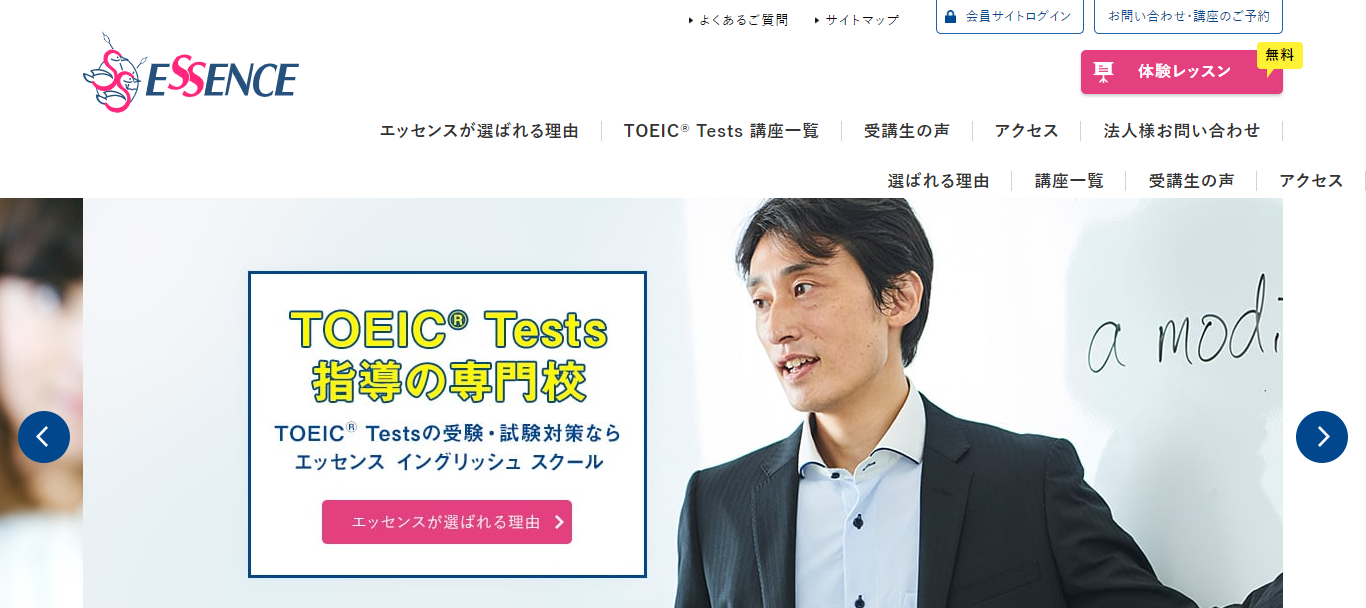 エッセンスの講師は、全員TOEIC満点を取っている講師です。TOEIC試験のコツなども熟知しているので、ノウハウは申し分ありません。