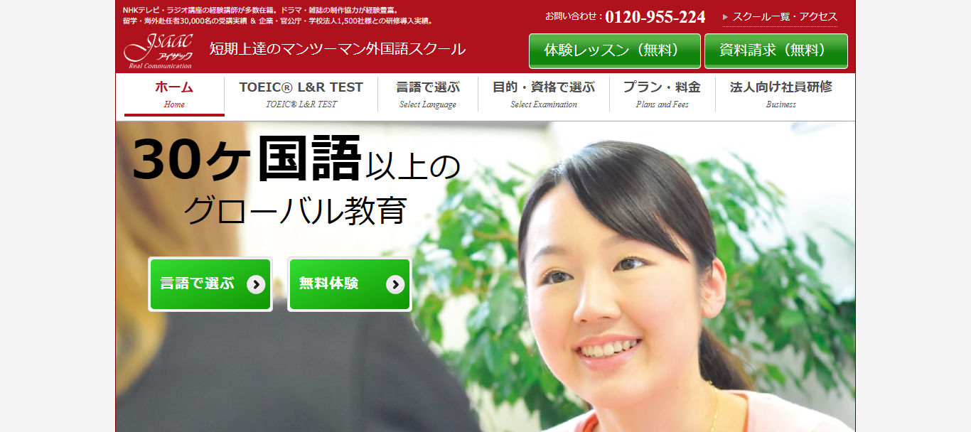 アイザックは40年の歴史があるスクールで、TOEIC900点後半〜満点を取っている実力のある講師ばかりが揃っています。