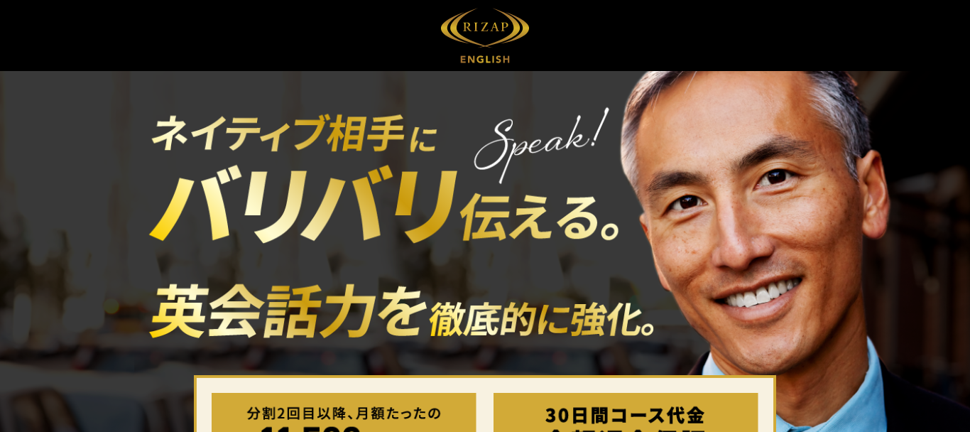 RIZAP ENGLISH は2か月~の短期間で英語脳を鍛えるパーソナルトレーニング型の英会話スクールです。