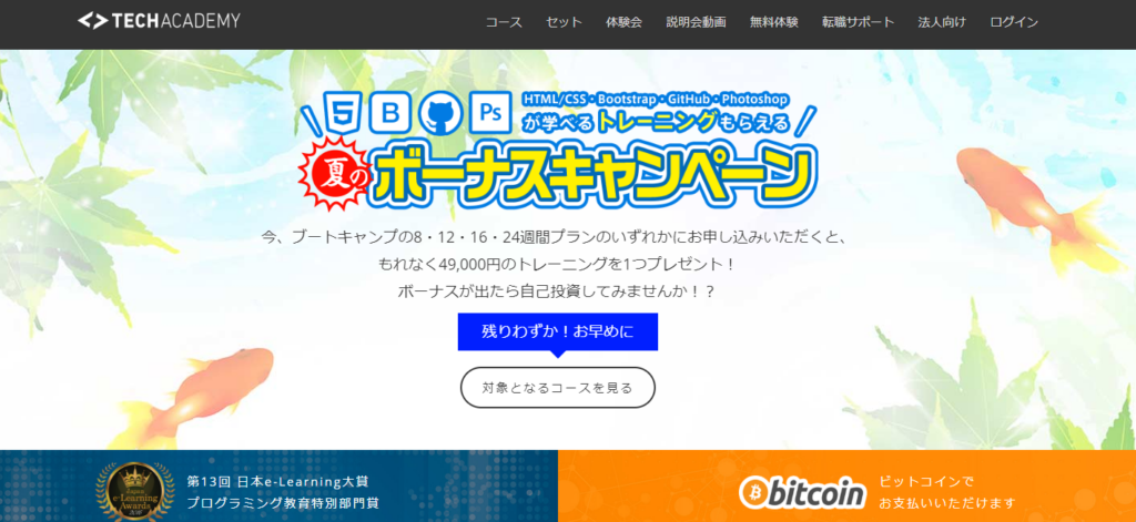 | 学べる言語 | HTML・CSS・JavaScript・Ruby・Ruby ・on Railsなど |