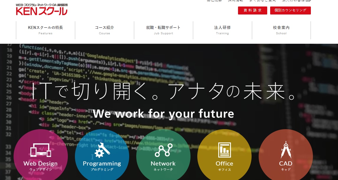 開校31年の実績を持つ「KENスクール」は、東京のほか、神奈川・大阪・京都でも受講可能な対面式オフラインスクールです。個人の理解度に合わせた、効果的な学習カリキュラムを提供しています。