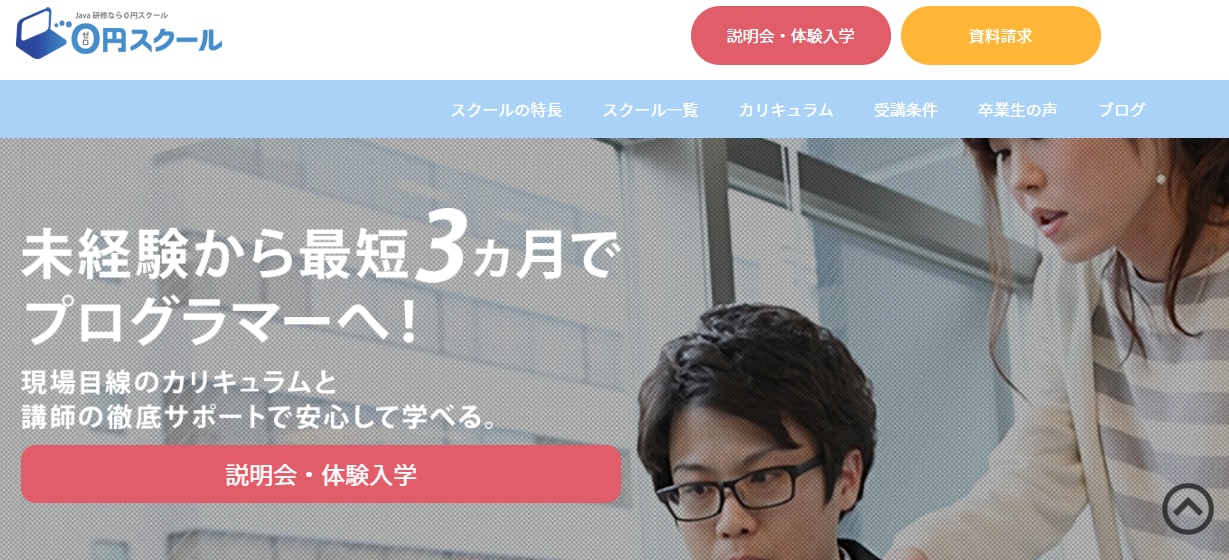 「0円スクール」は、Javaを中心にWebアプリケーションの開発が学べる、完全無料のプログラミングスクールです。東京以外にも札幌・仙台・名古屋・大阪・福岡に教室を展開しています。