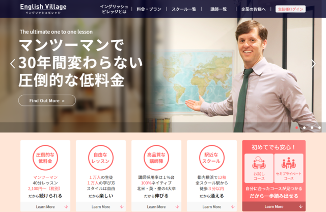 ネイティブの講師とのマンツーマンレッスンが40分2100円で受講できるのが最大の魅力。