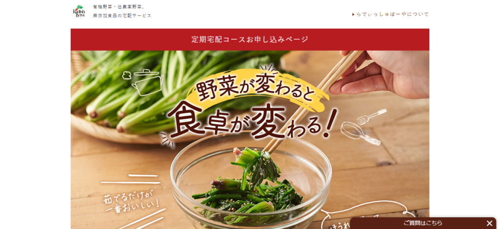 1,980円のおためしセットもありますので、最初にこちらから始めてみるとよいでしょう。らでぃっしゅぼーやの主な特徴は、次の一覧の通りです。