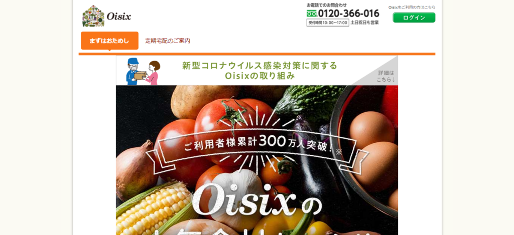 少量だけ試してみたい場合は、6品目の野菜が入ったおためしセットを注文できます。オイシックスの主な特徴は、次の一覧の通りです。
