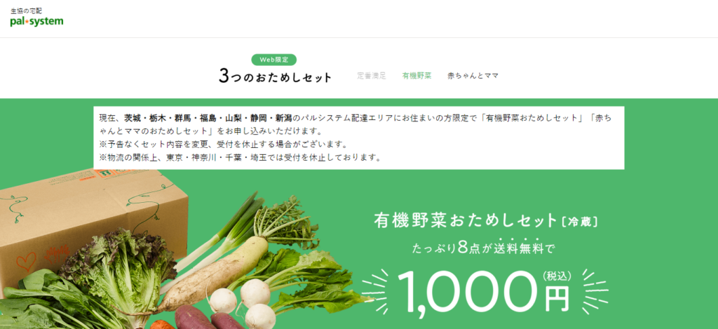 また、利用しようと考えている野菜宅配サービスが、自分の住んでいる場所に宅配をおこなっているかどうか、宅配エリアに入っているかどうかも確認しておきましょう。