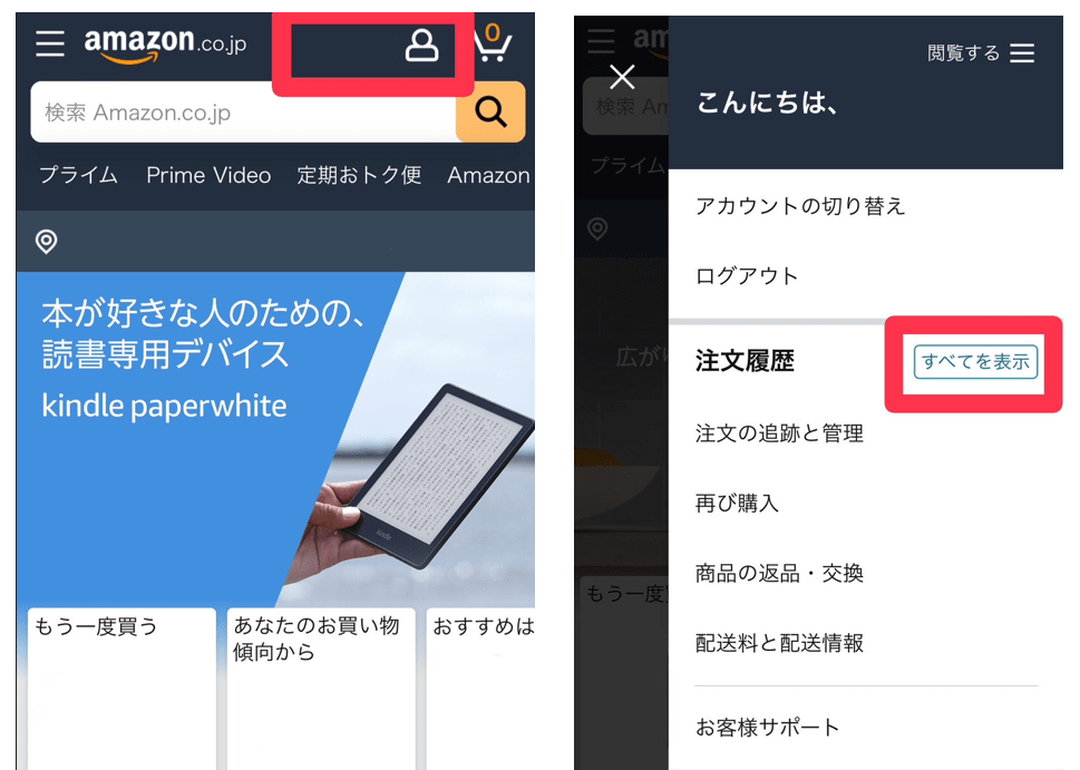 それでは、次にAmazonのサイト上から領収書を発行する方法を、スマートフォンとパソコンに分けて説明していきます。