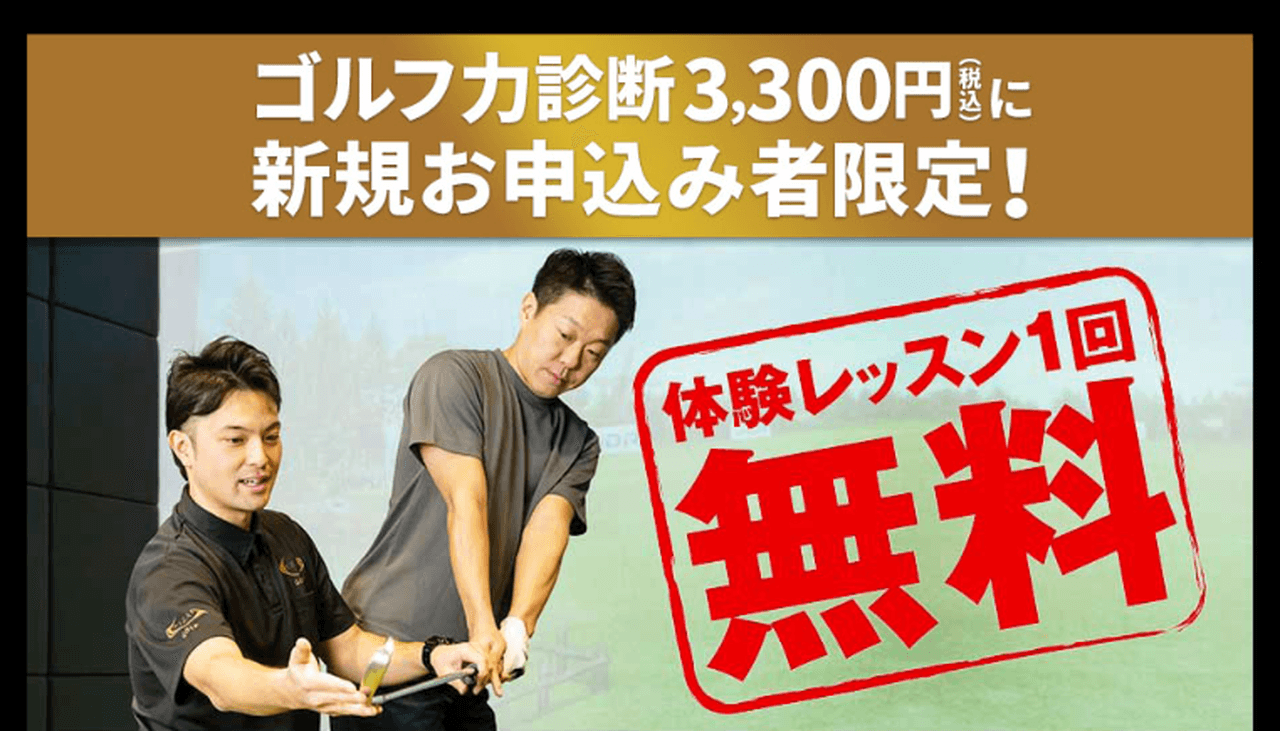 | 特典 | ゴルフ力診断後、新規お申込すると体験レッスン1回無料 | ||