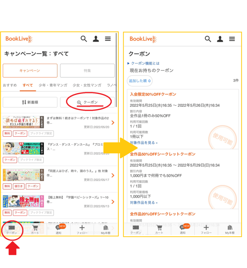 ブックライブのクーポンやキャンペーン情報の探し方や通知の活用方法について紹介します。