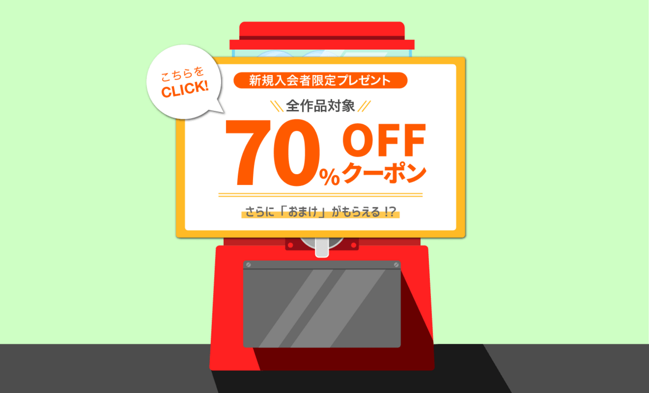 ブックライブでは、初回登録すると全作品に使える70%OFFクーポンが配布されます。