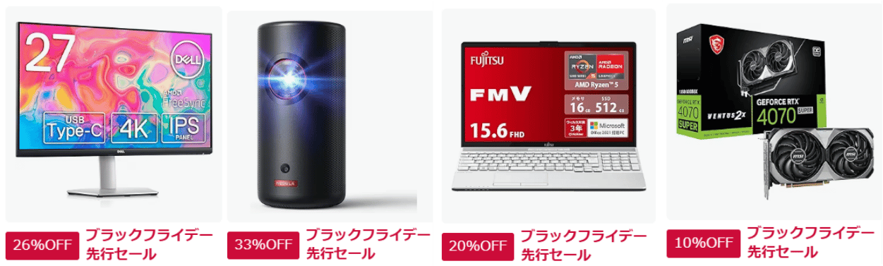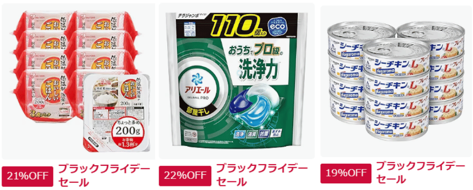 Amazonブラックフライデーでは様々な商品が大特価セールになるほか、ポイントアップキャンペーンやその他各種キャンペーンも同時開催されます。
