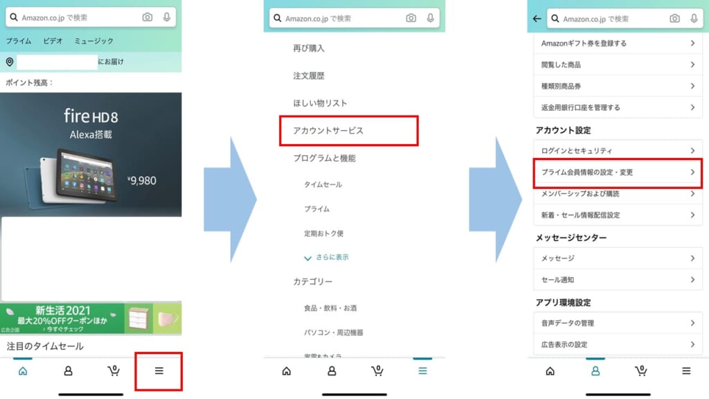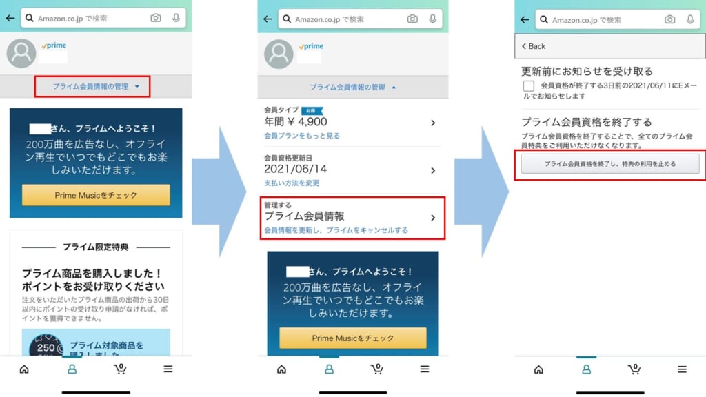 - [会員情報を更新し、プライムをキャンセルする]を選択