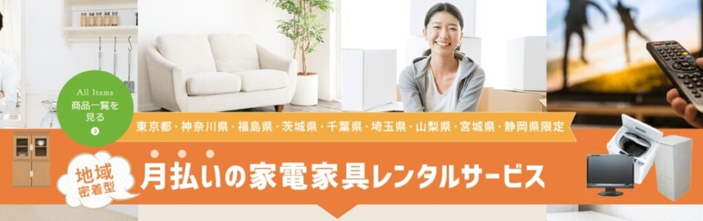 全国エリアに対応している、家具家電レンタル業界大手のサービスです。業界最大級の品ぞろえで、豊富なアイテムから希望する商品を選べます。一部地域を除いて配送料と回収料が無料なのもうれしいポイント。