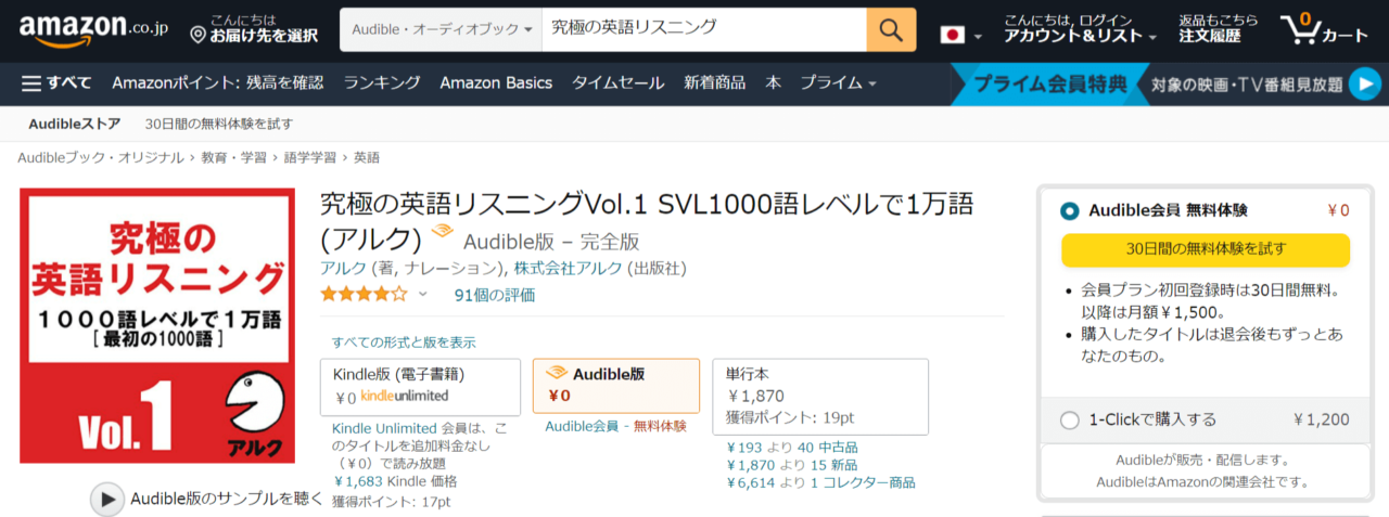 Audibleで「究極の英語リスニング Vol.1 SVL1000語レベルで1万語」を聴く