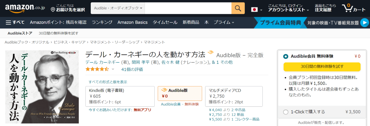 Audibleで「デール・カーネギーの人を動かす方法」を聴く