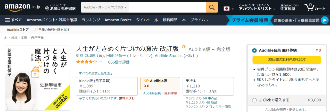 Audibleで「人生がときめく片づけの魔法 改訂版」を聴く