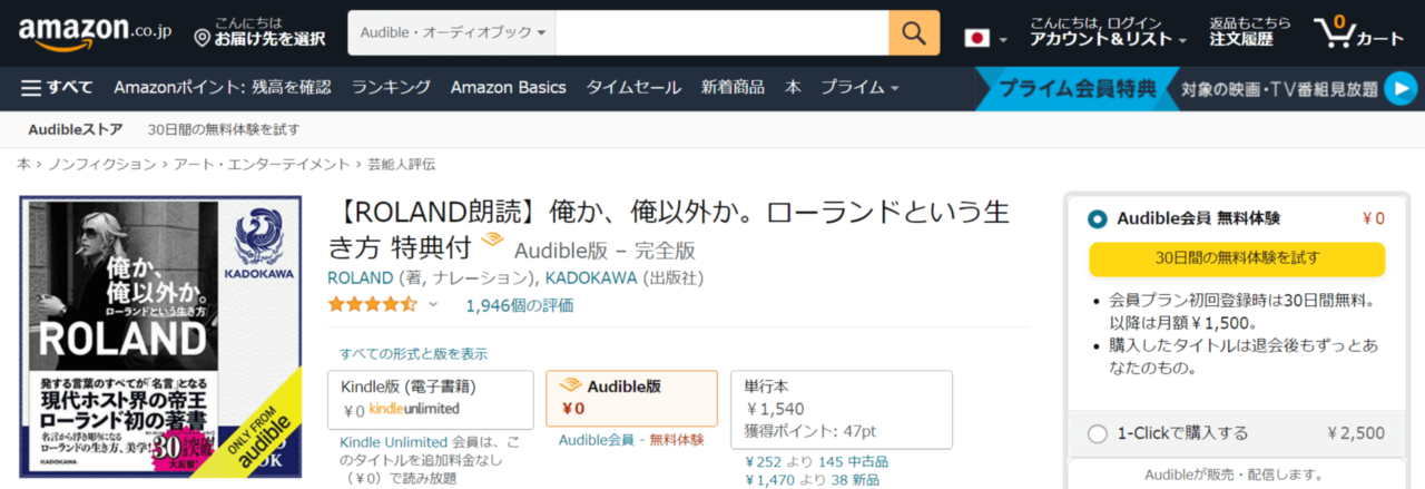 Audibleで「俺か、俺以外か。ローランドという生き方」を聴く