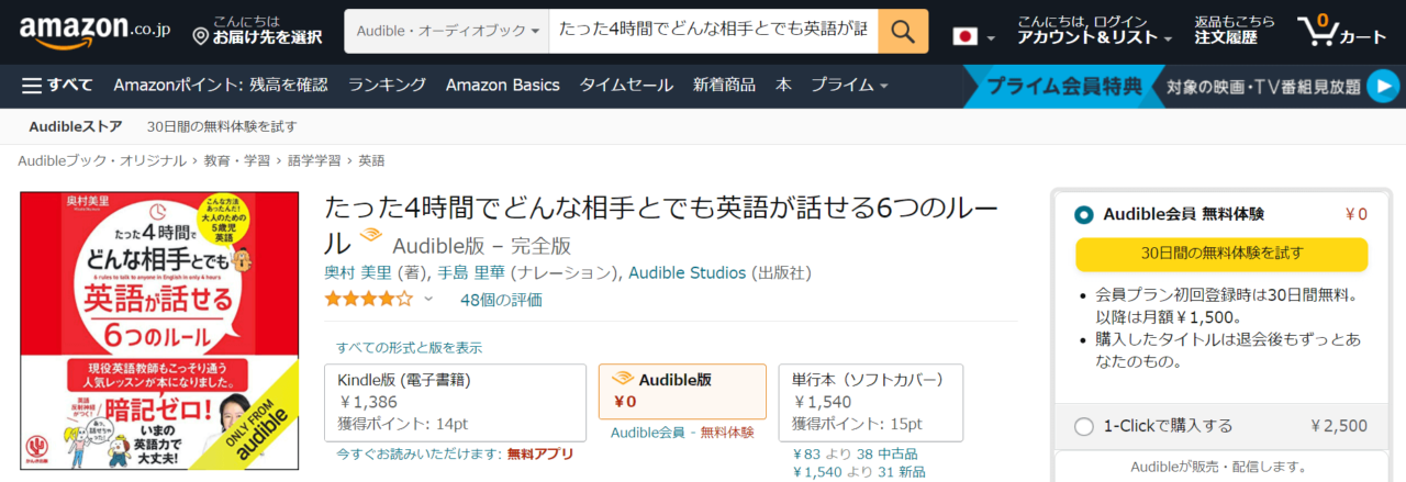 Audibleで「たった4時間でどんな相手とでも英語が話せる6つのルール」を聴く