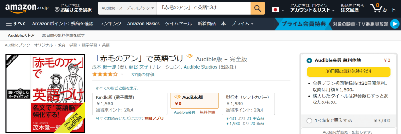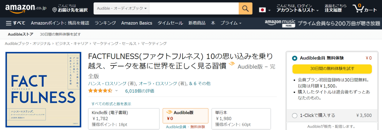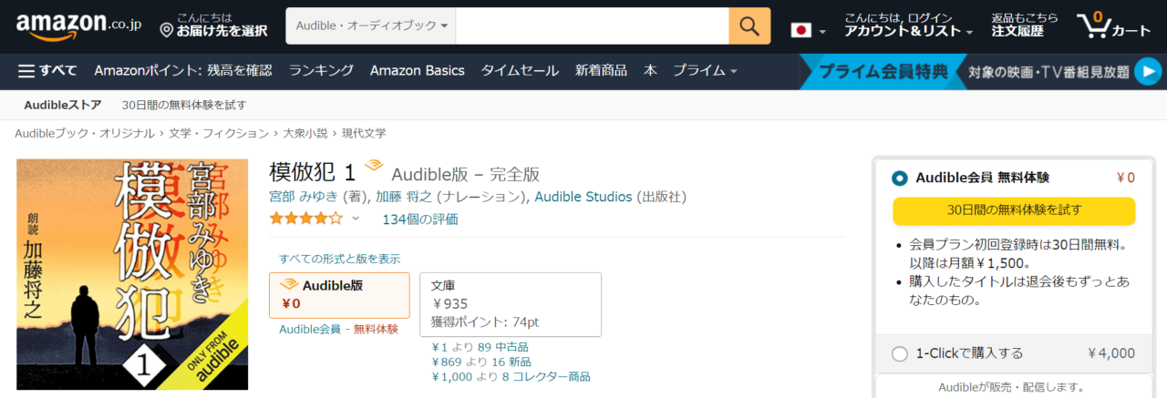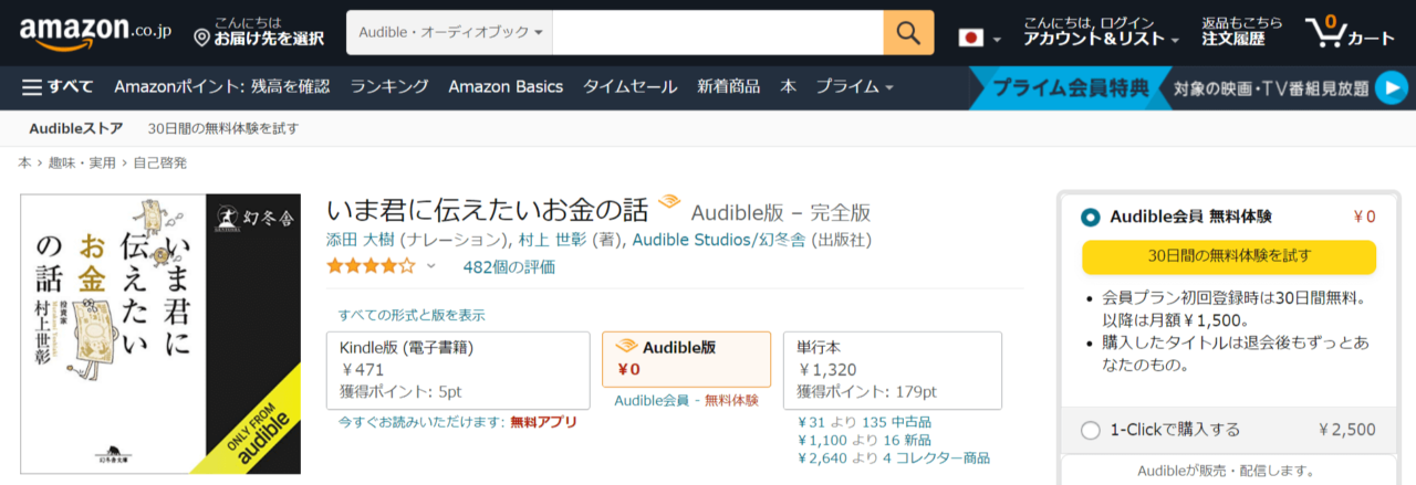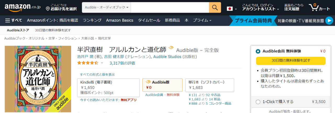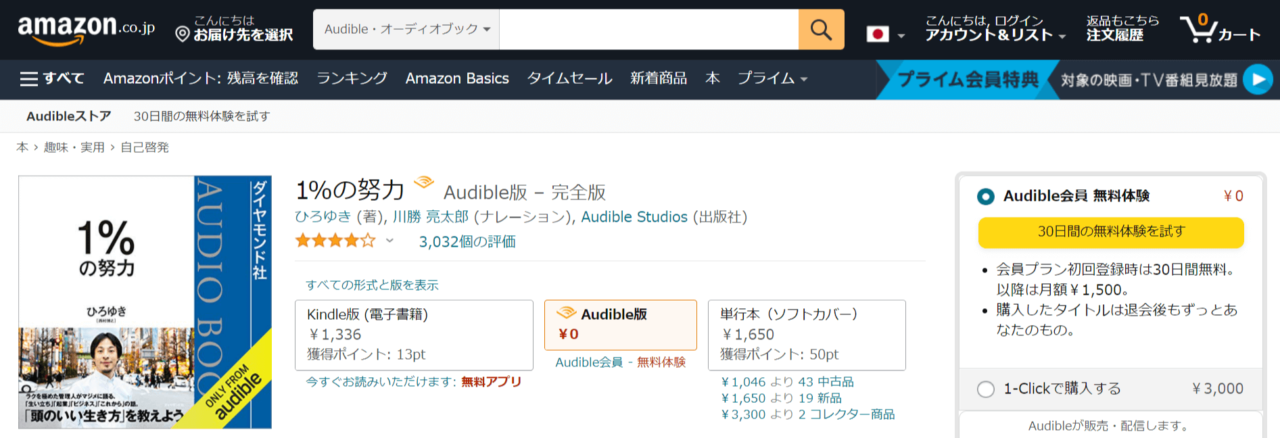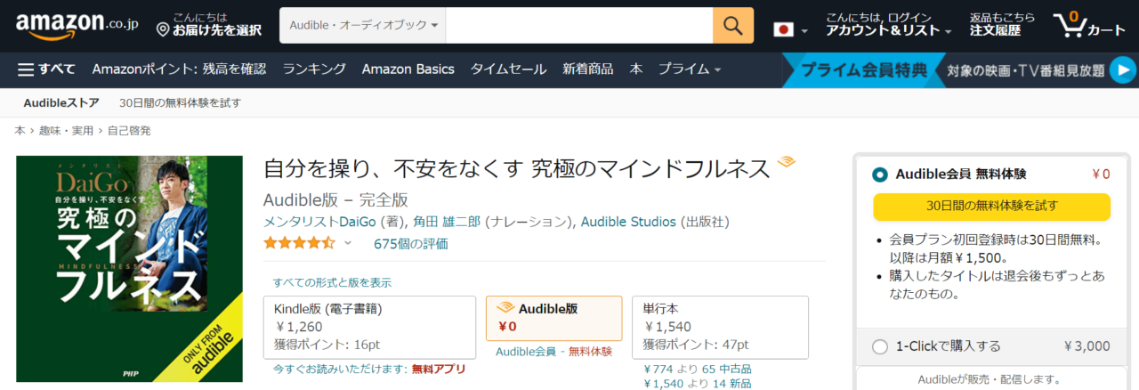 登録後30日間は無料期間なので、オーディブルの聴く本がどのような感じが試すことができます。オーディブル体験の入り口として、ぜひトライしてみてください。