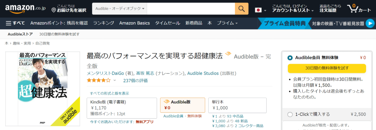 Audibleで「最高のパフォーマンスを実現する超健康法」を聴く