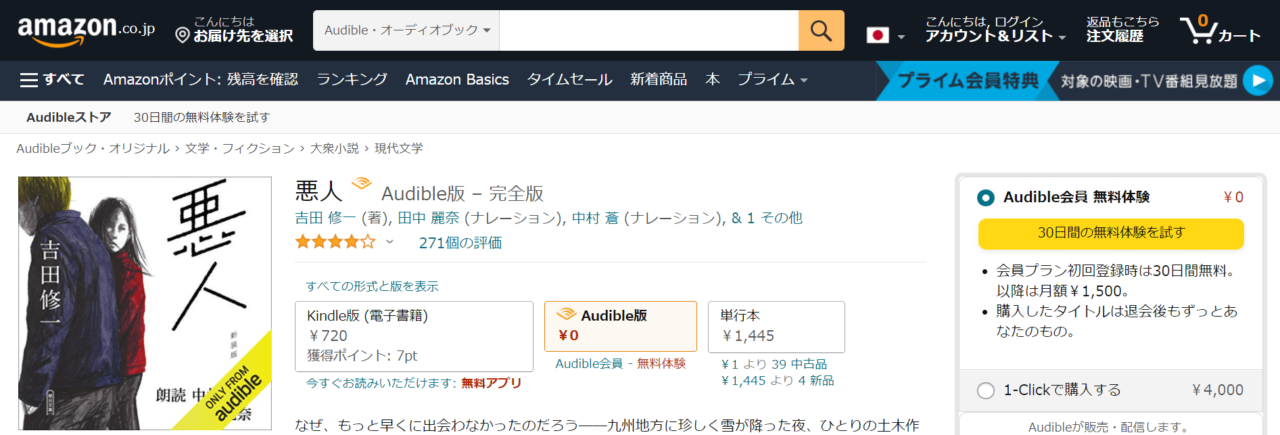 文庫本は特にオーディブルで聴くことがおすすめかも知れません。音で物語を聴くことにより没入感が増してより楽しむことができるでしょう。
