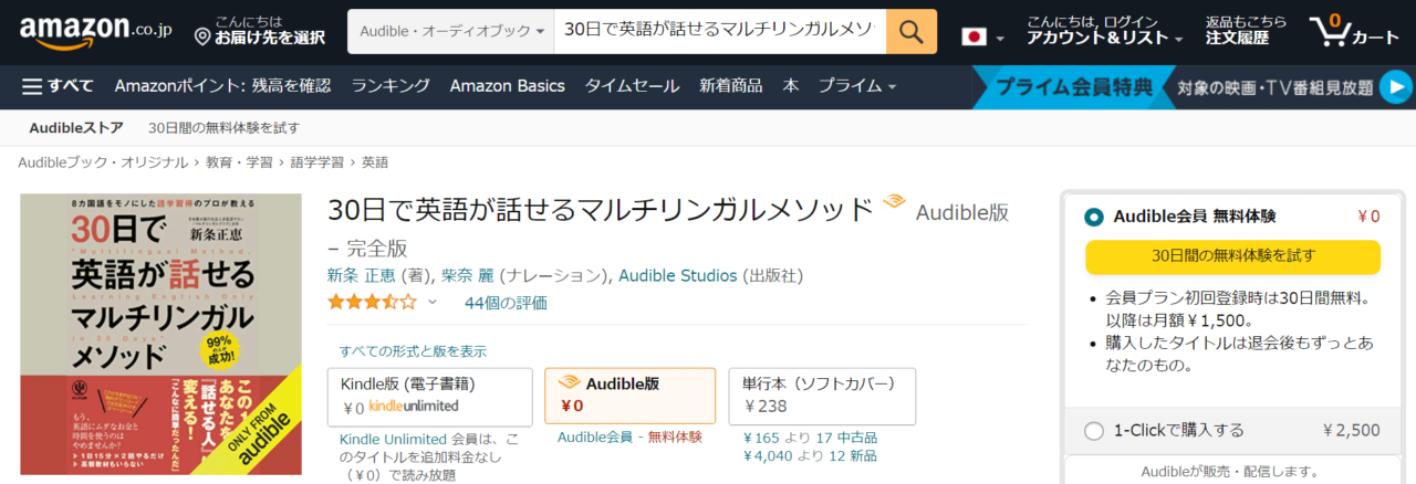 Audibleで「30日で英語が話せるマルチリンガルメソッド」を聴く