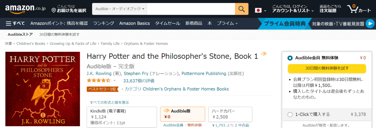 Audibleで「Harry Potter and the Philosopher’s Stone, Book 1」を聴く