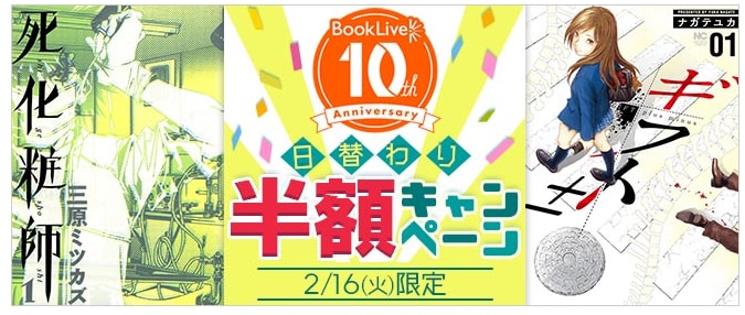2月12日(金)~21(日)の期間中、対象の漫画作品が半額になります。対象作品は毎日変わります。