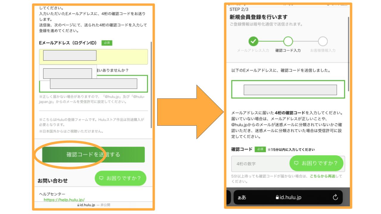 Eメールアドレスを入力し、問題が無ければ「確認コードを送信する」をタップします。