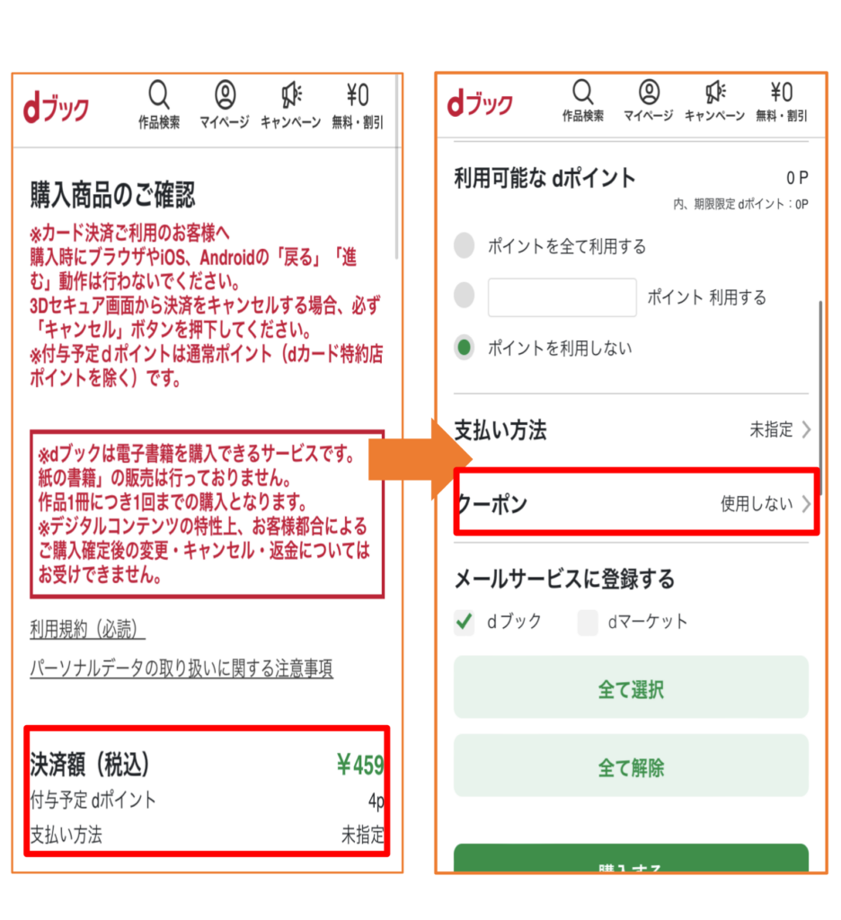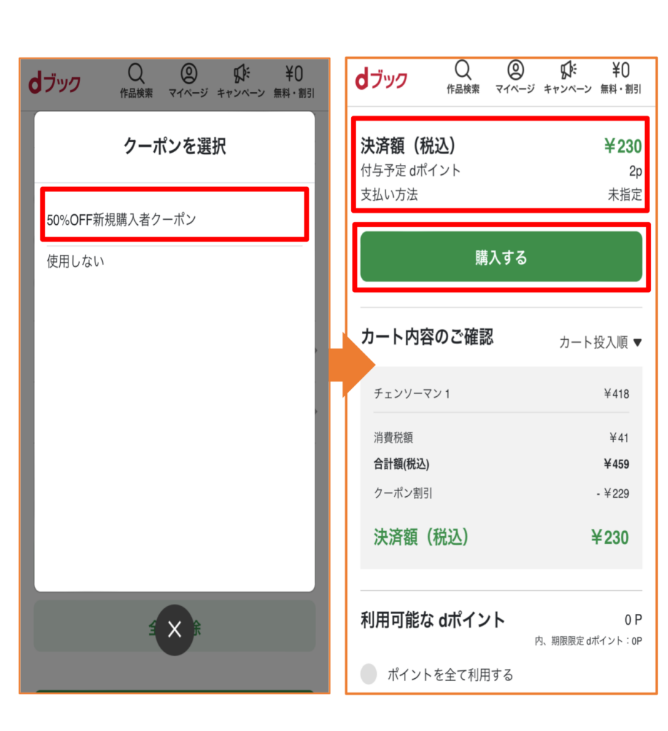 本の購入方法がわかったところで、購入する際のクーポンの使い方もチェックしていきましょう。