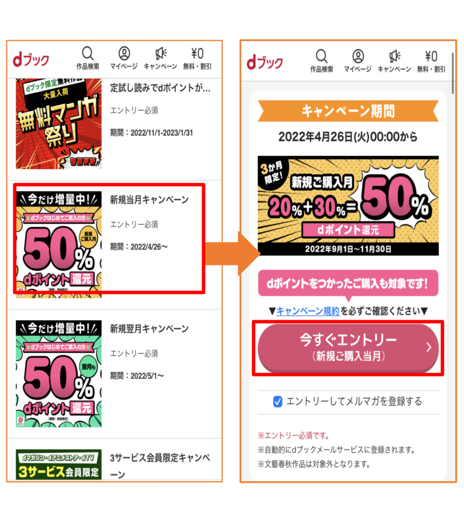 dブックで電子書籍を購入する際は、以下2つのポイントを押さえることでよりお得に読めます。