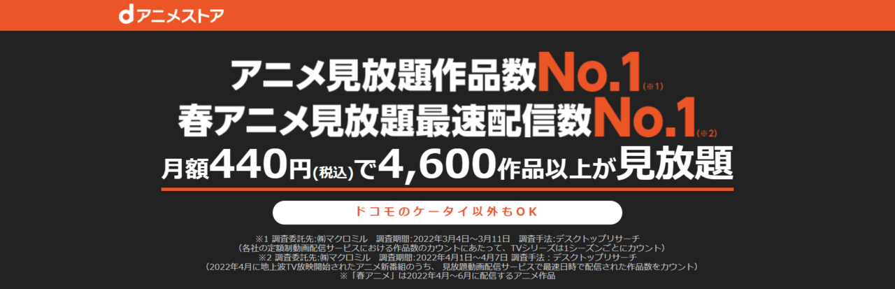 dアニメストアは、アニメ関連作品に特化した動画配信サービスです。