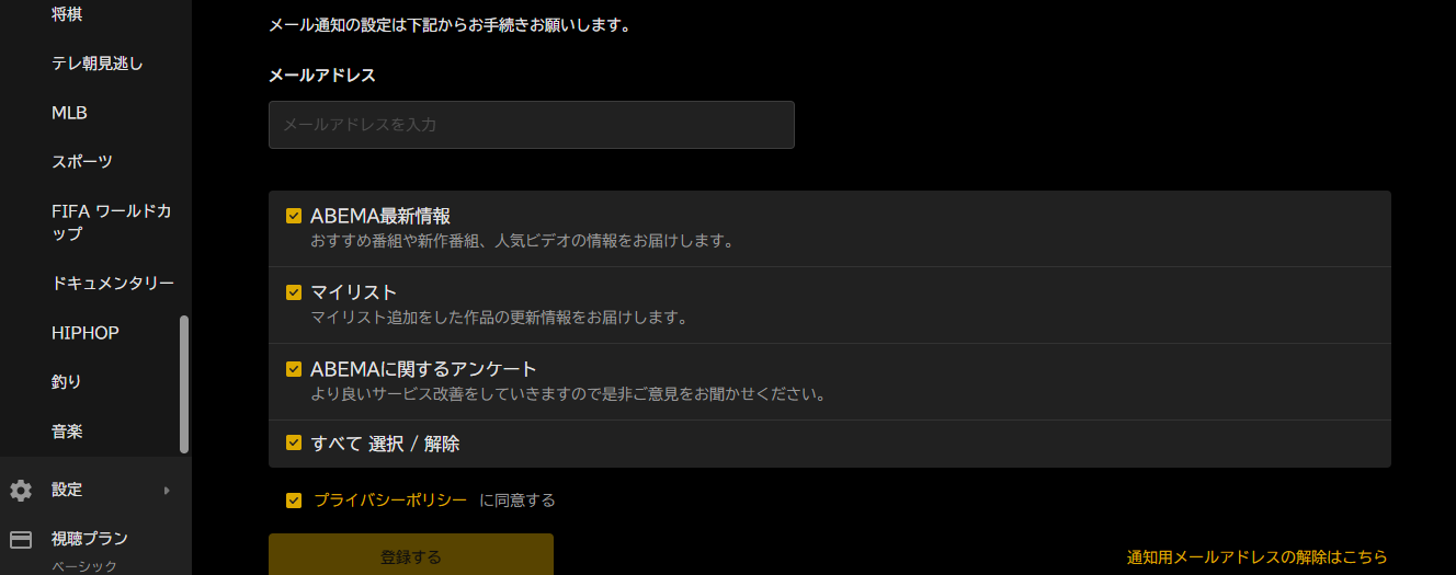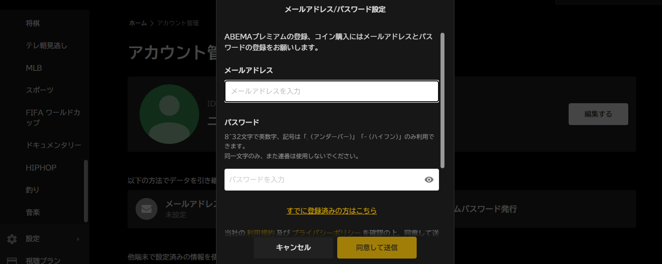 ABEMAプレミアムという月額制の有料プランを利用する場合は、会員登録をする必要があります。