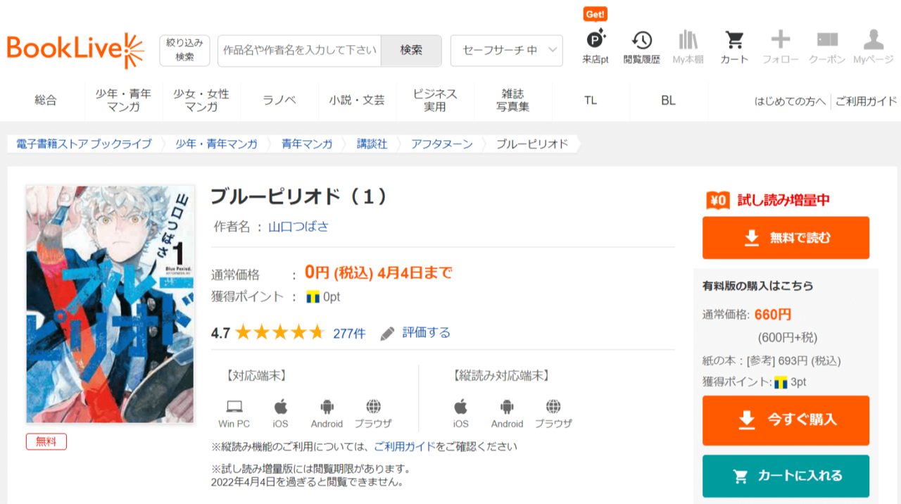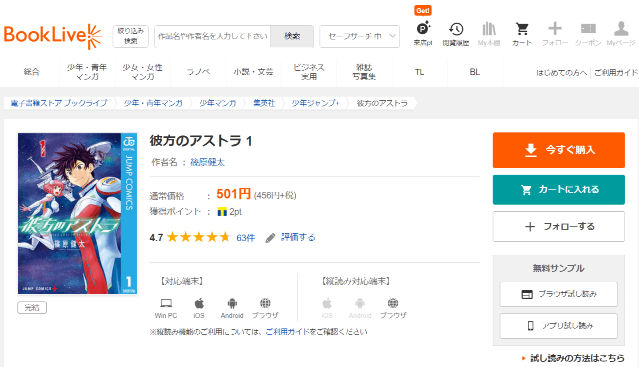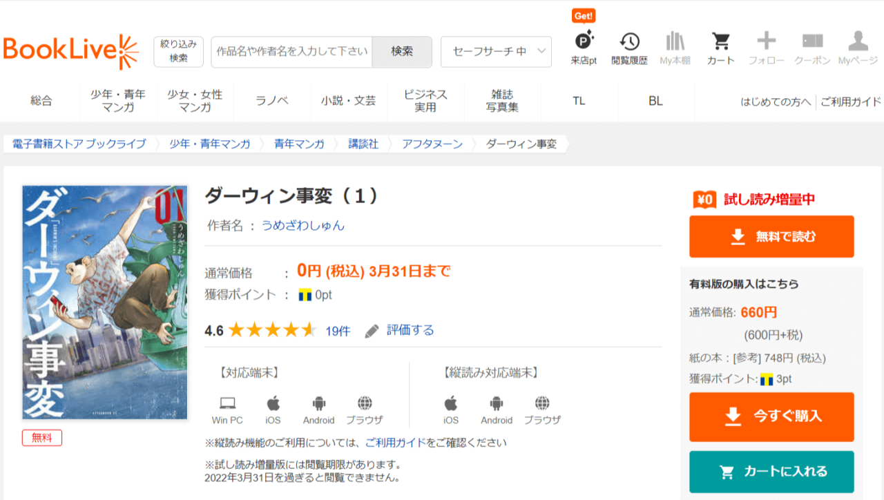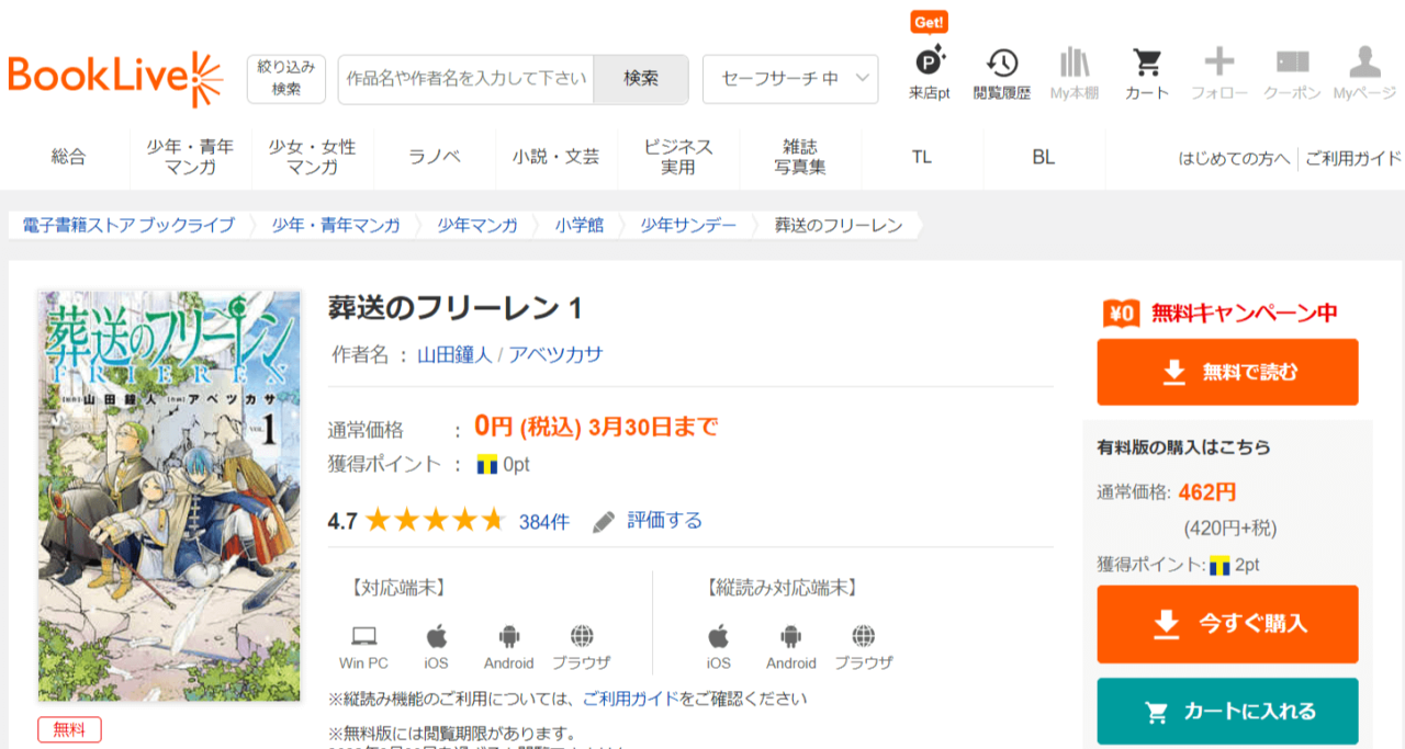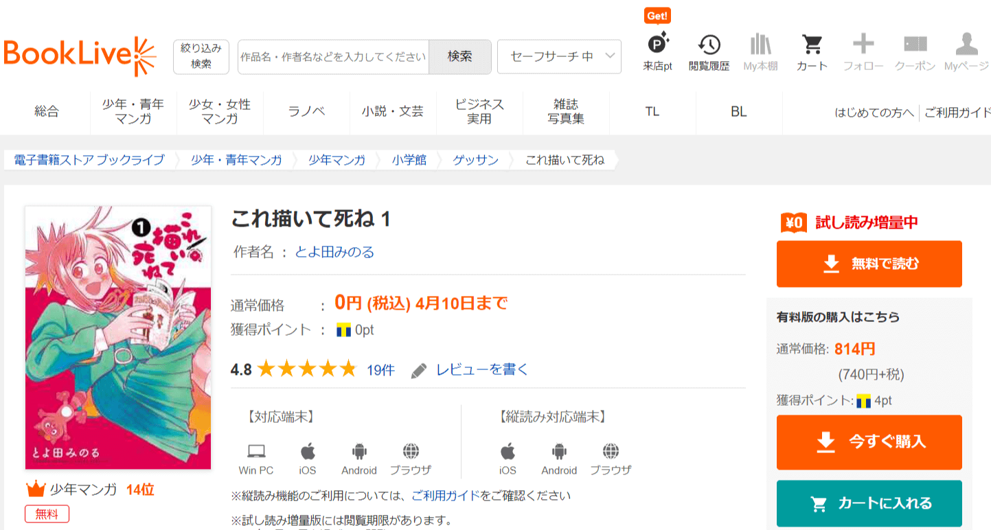 試し読みを無料でできるので、電子書籍サービスが気になっている人は一度お試し感覚で利用してみてください。おすすめ漫画サイトについては、別記事で詳しくまとめています。