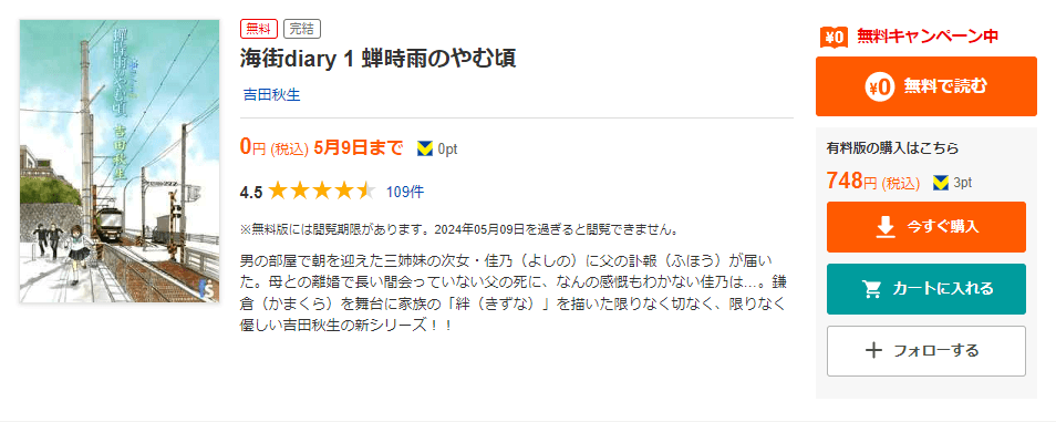 電子書籍サービスでは独自キャンペーンやセールを毎日実施しており、マンガ大賞歴代全受賞作品を通常よりもお得に読めます。
