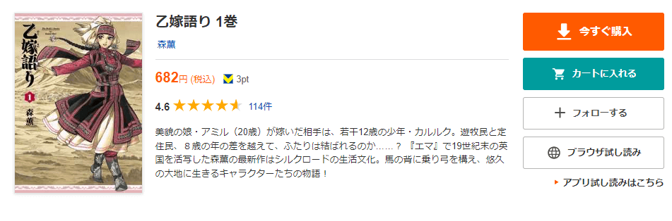 2014年のマンガ大賞受賞作品は、『乙嫁語り』でした。