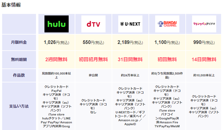 こちらの記事では映画見放題サービスの比較ドラマ見放題サービスの比較をしているので、併せて参考にしてくださいね。