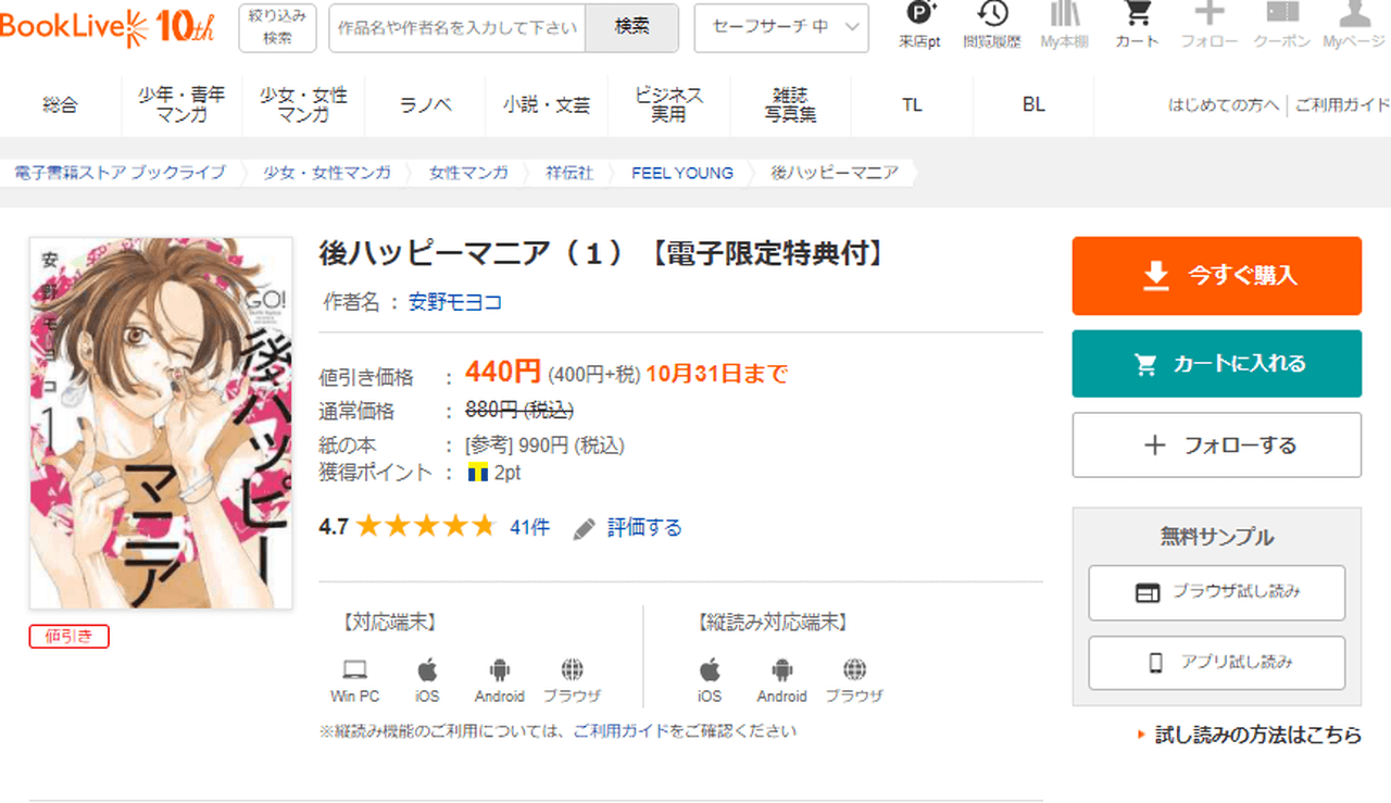 電子書籍なら通勤・通学のスキマ時間に読んだり、時間のあるときにまとめて一気読みしたりできます。漫画とともに過ごす時間で、毎日をより充実させましょう。