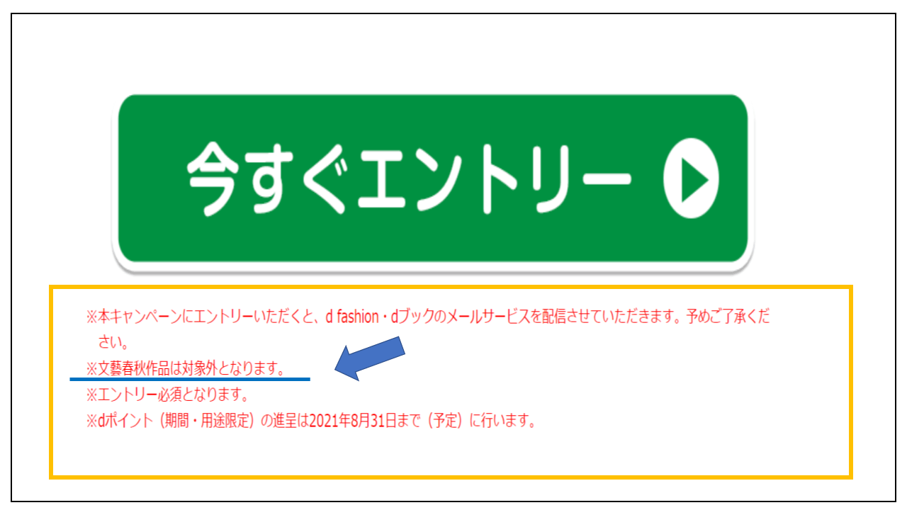 dブックのキャンペーンでは、「dコインでの支払い」と「文藝春秋作品」はキャンペーンの対象外です。