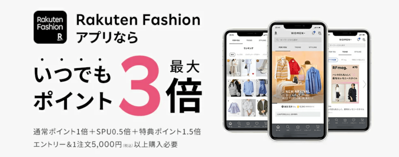 楽天ファッションアプリから商品を購入すると、ポイントが最大3倍になります。