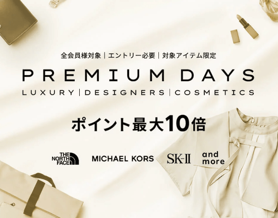 特典1.【PREMIUM DAYS】エントリー&お買い物でポイント最大9.5倍!