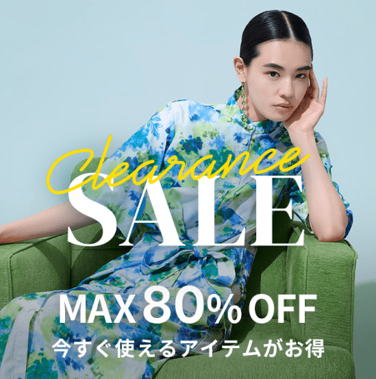 現在、MAX80%OFFとなるClearance SALEが開催中!春夏アイテムがプライスダウンしています。