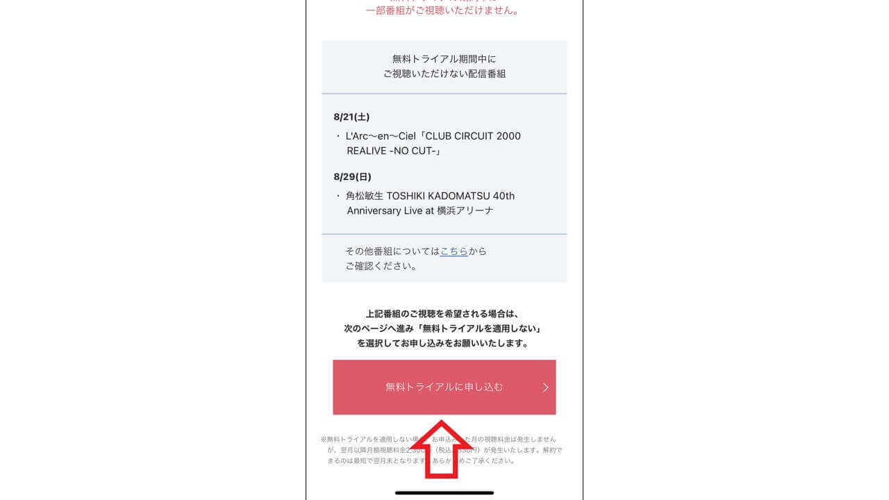 また、同じページで無料トライアルを適用するかどうかを選択する欄もあります。「無料トライアルを適用する」の欄にチェックが入っているか、しっかり確認しておきましょう。