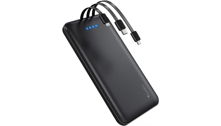 TSUNEOのモバイルバッテリーです。ケーブル内蔵型なので、ケーブルを別途用意したり持ち運ぶ必要がありません。