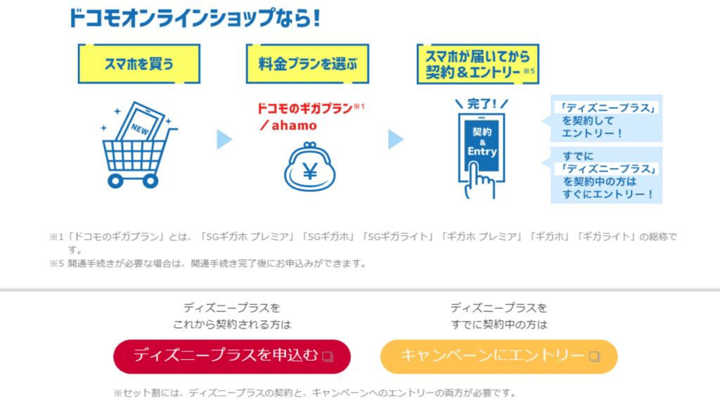 ここからはドコモ経由でディズニープラスに入会する方法をご紹介します。