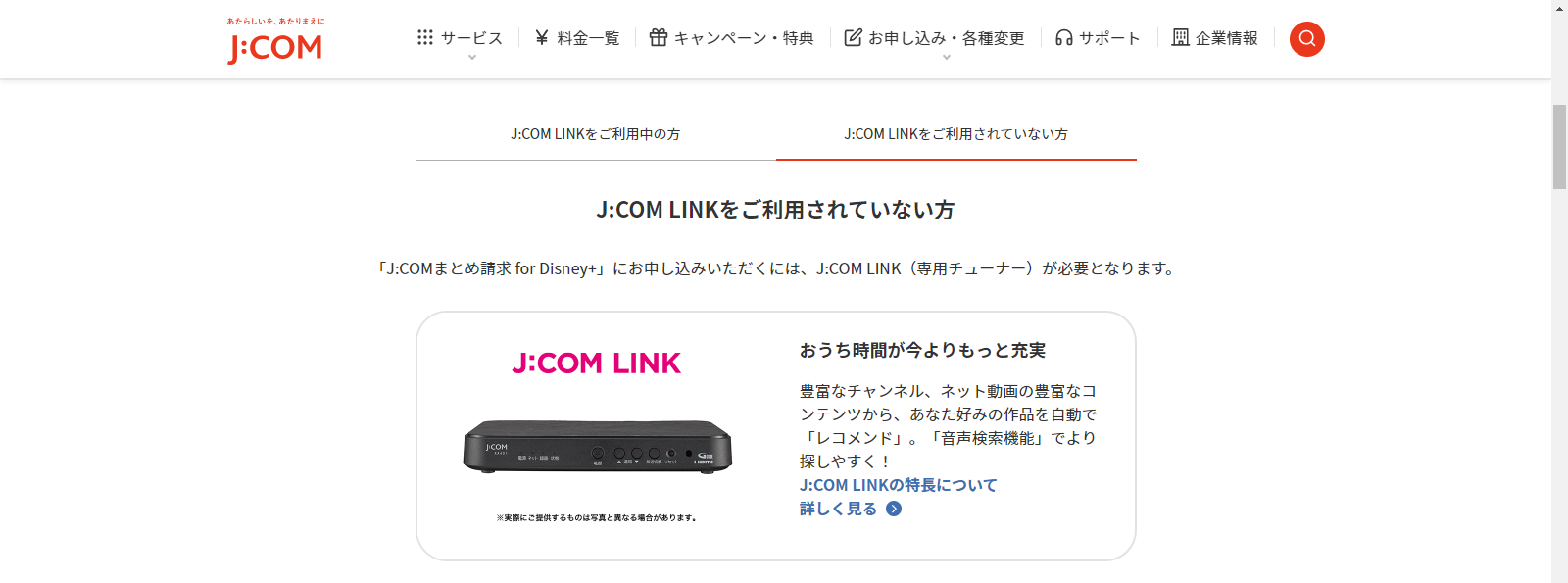 - 「J:COM LINK」または「J:COM LINK mini」の契約者